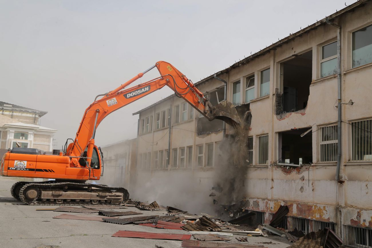 Konuşmanın ardından herhangi bir mimari ve tarihi özelliği bulunmayan eklenti binaların yıkımı gerçekleştirildi.